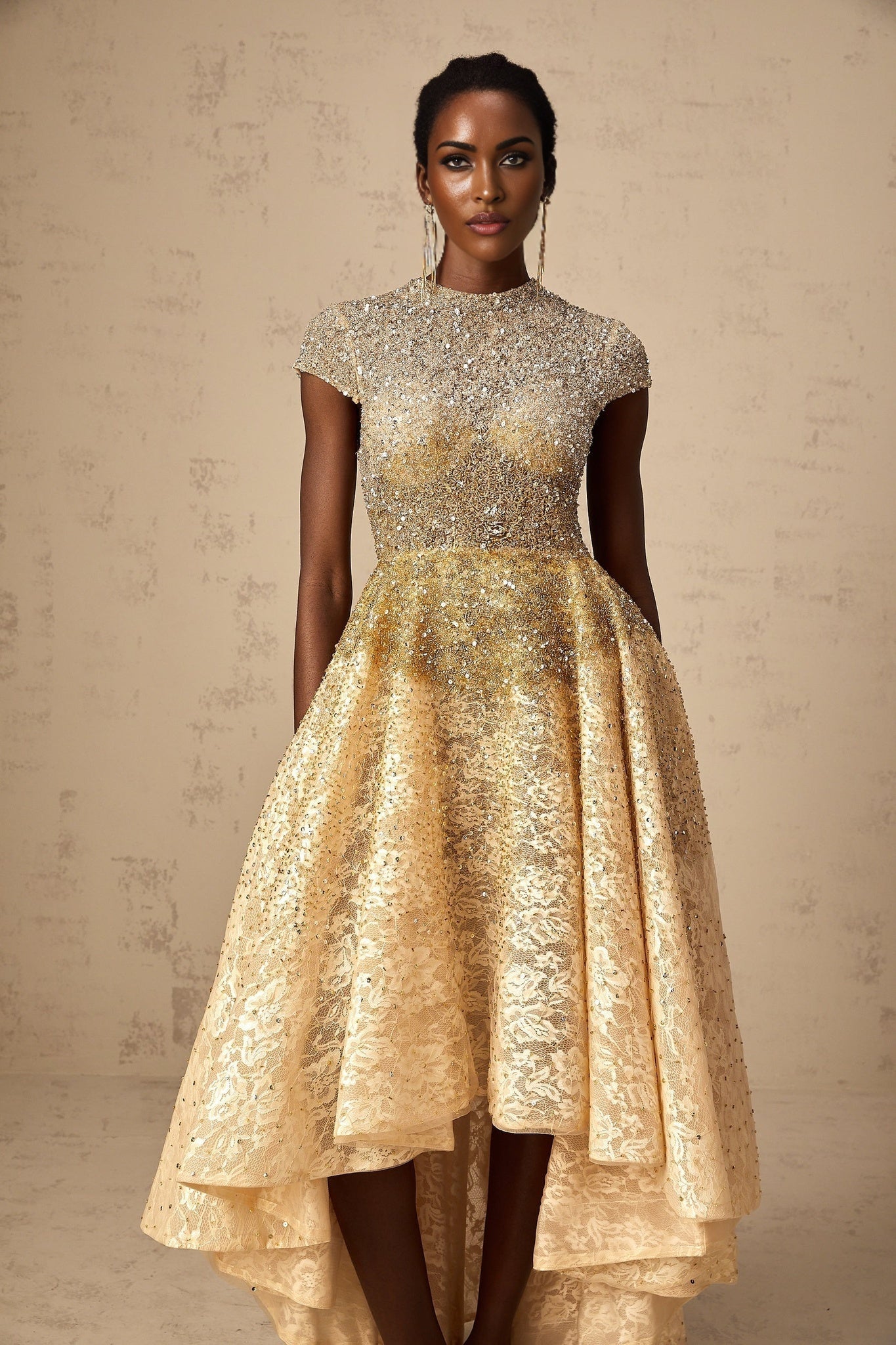 Francis Champagner Gold Pailletten High-Low-Hemdkleid