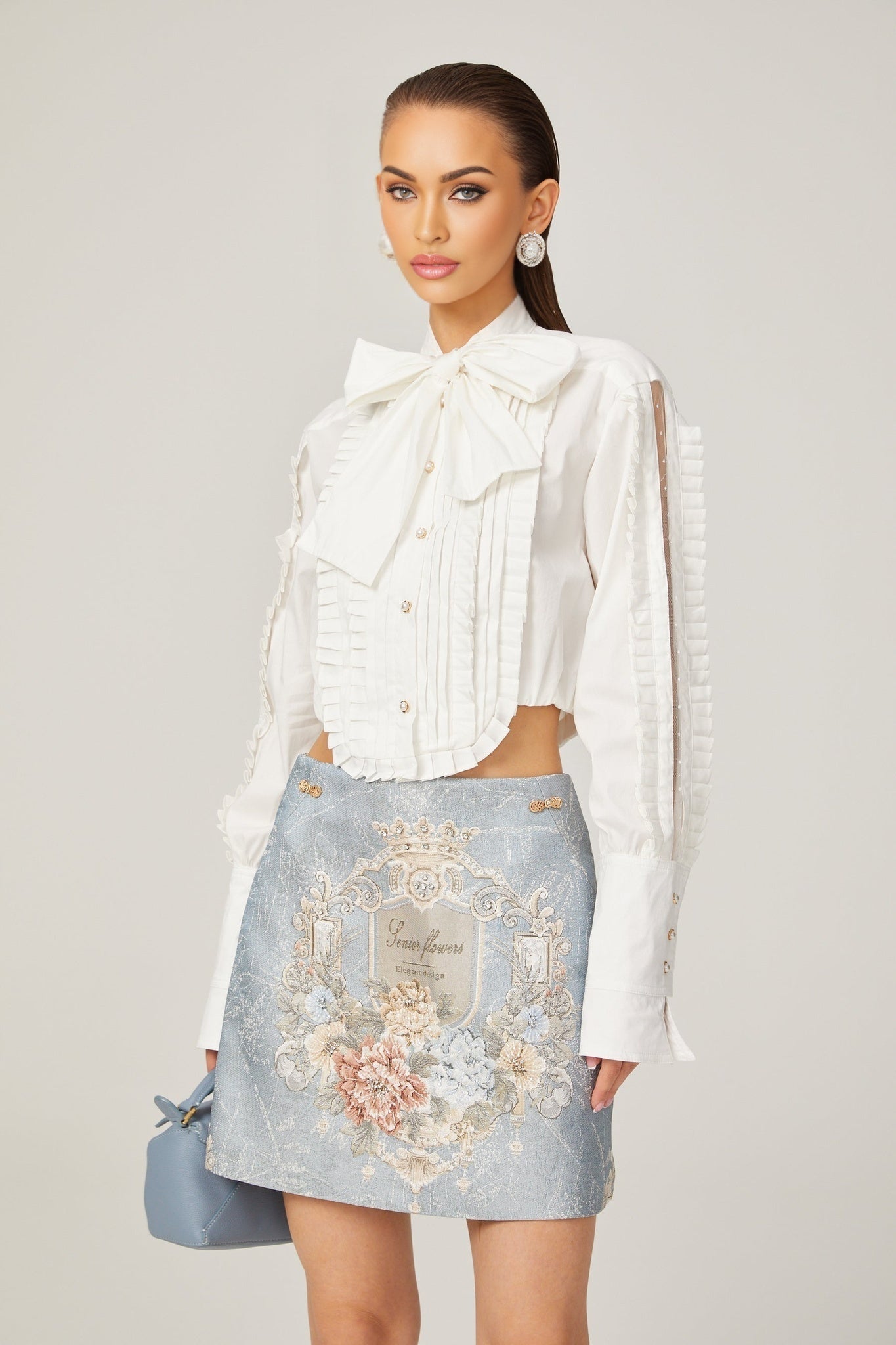 Giulietta Shirt Weiß Geraffter Schal-Kragen Modische Bluse