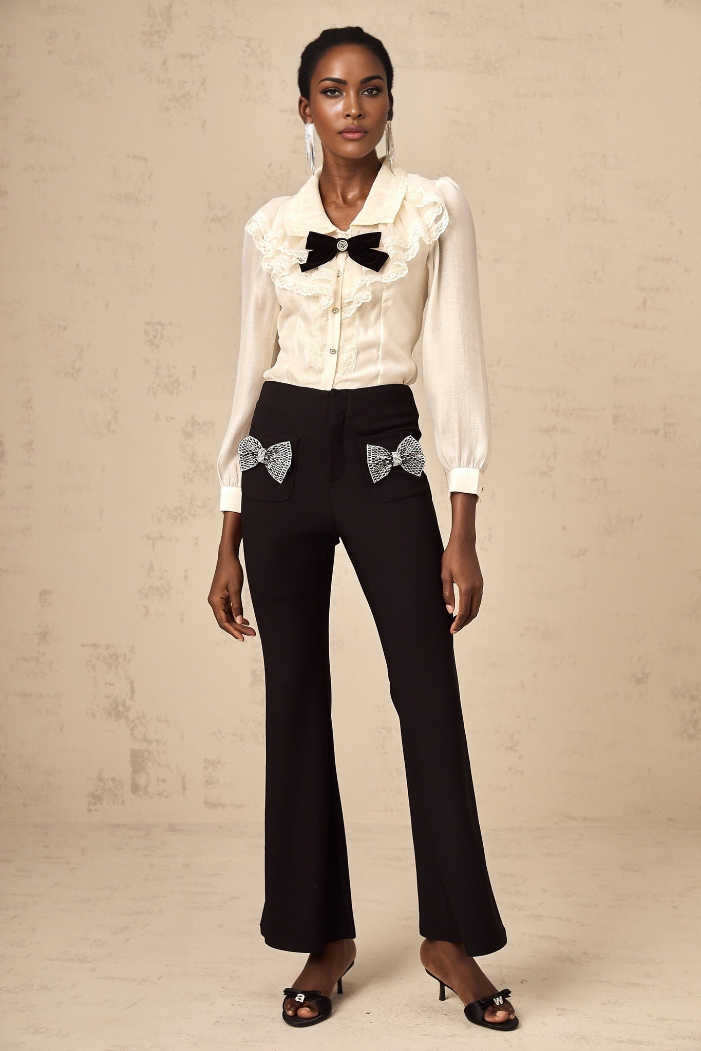 Gelsomina Schleifen-verzierte ausgestellte Hosen