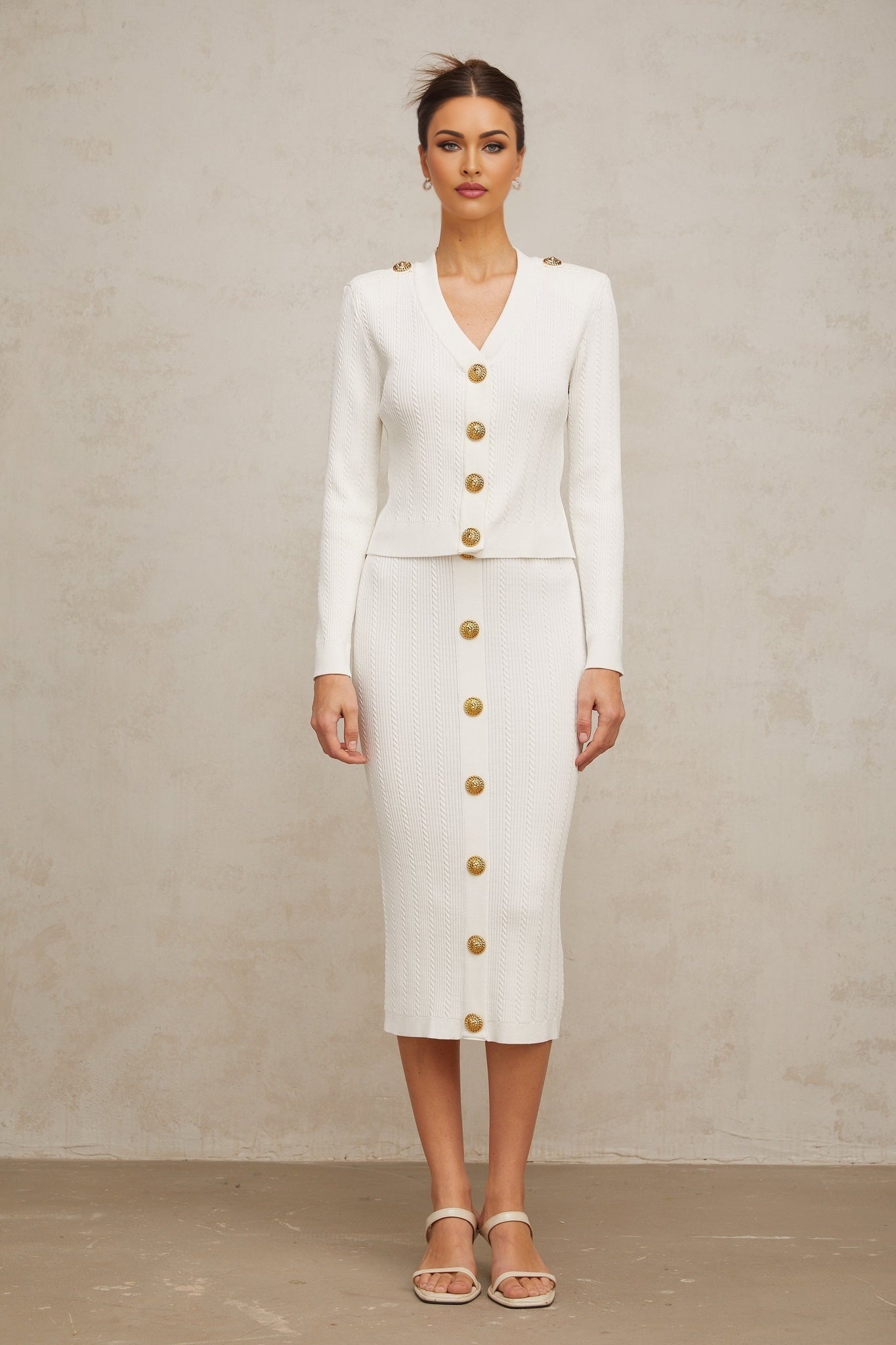 Priscilla Jacke & Rock Rippenstrick Weiß Epaulettenset