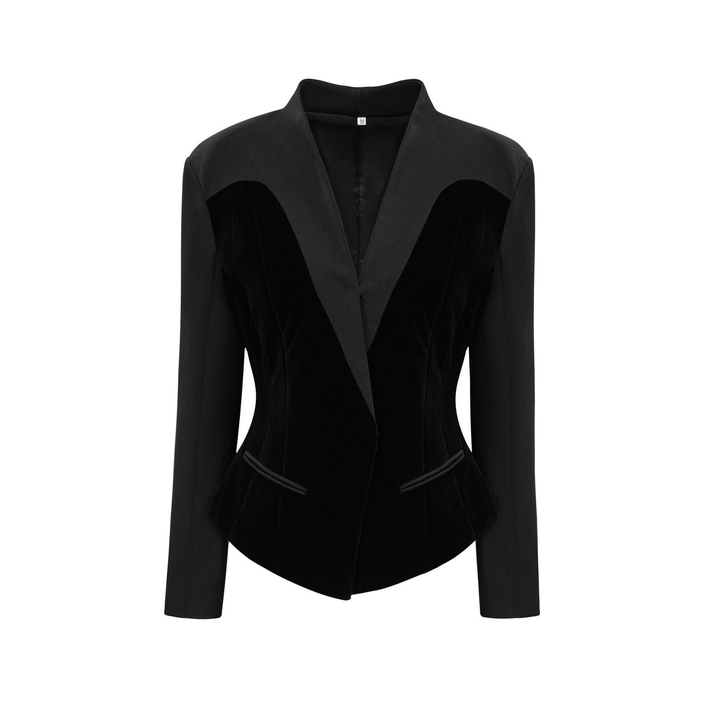 Schwarze Silvana Jacke mit V-Ausschnitt und tailliertem Bund