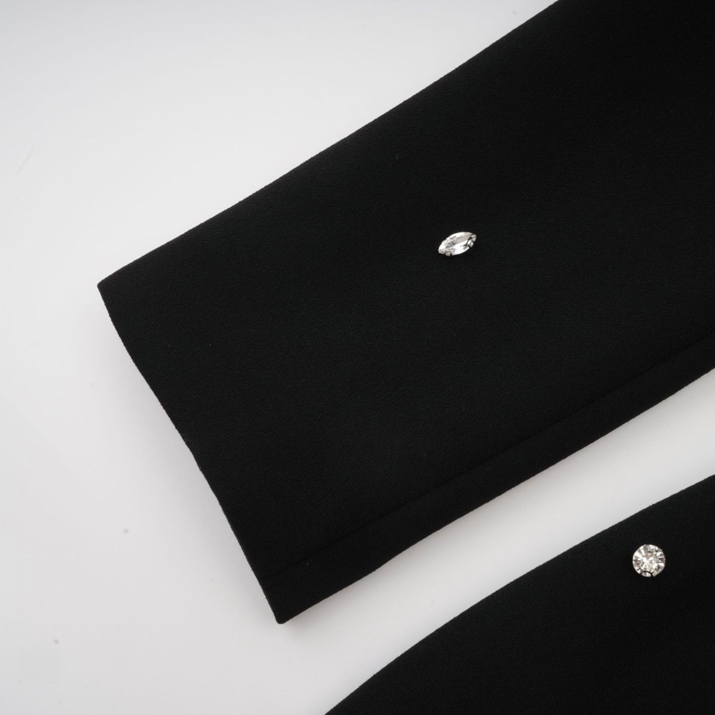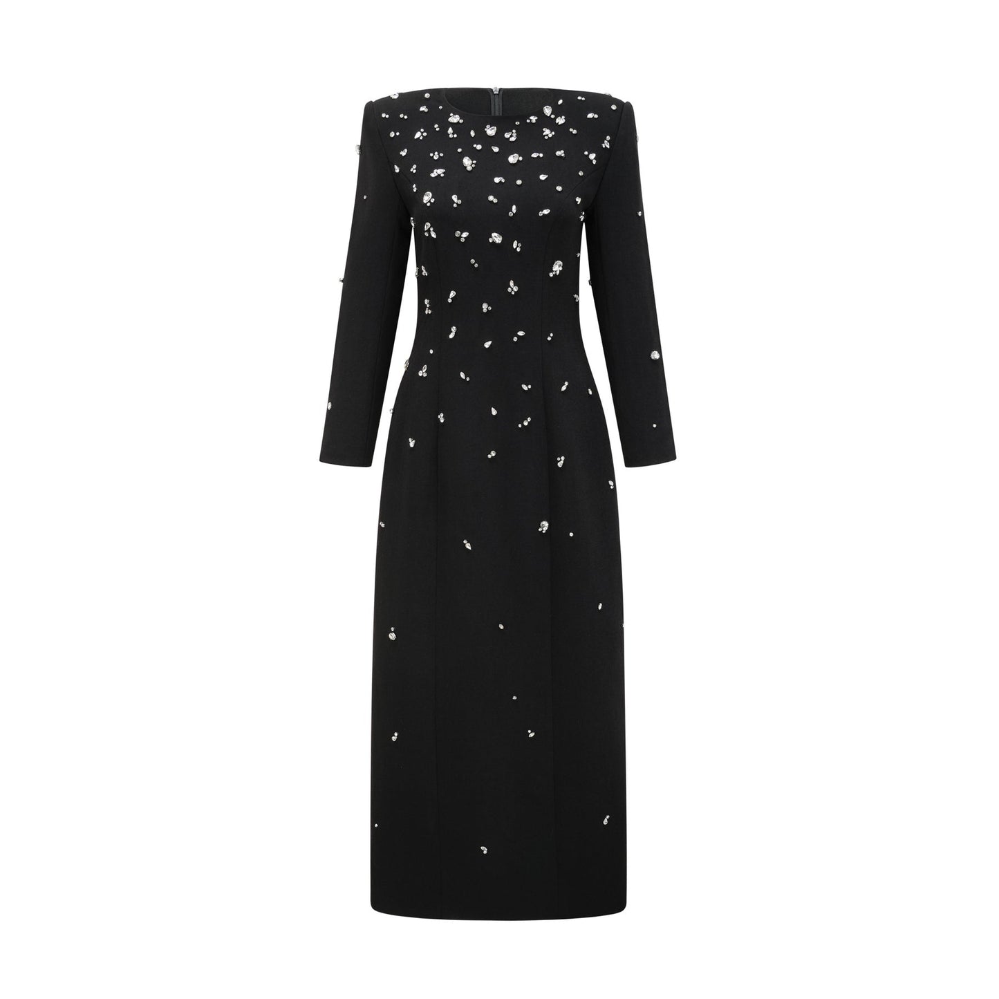 Ashley Maxikleid Elegant Schwarz mit Kristallverzierungen Lange Ärmel & Rückenschlitz