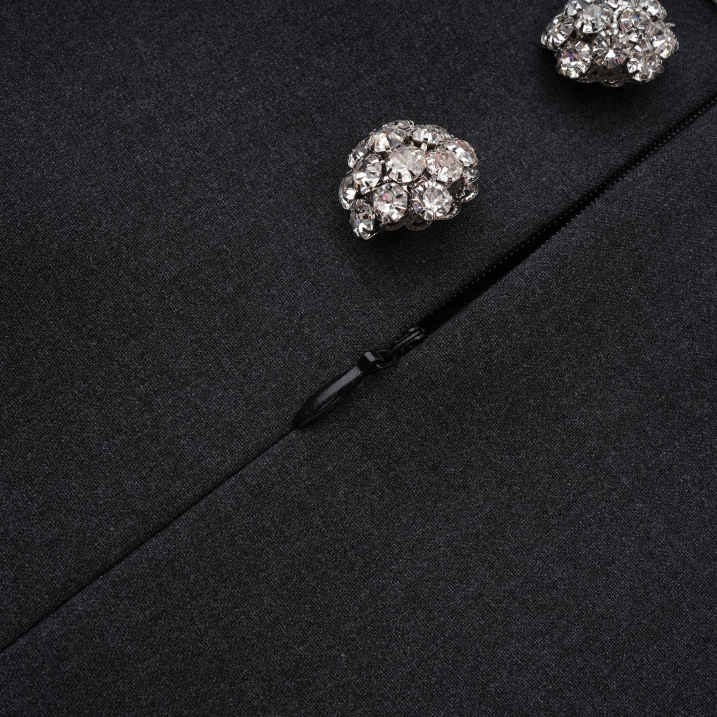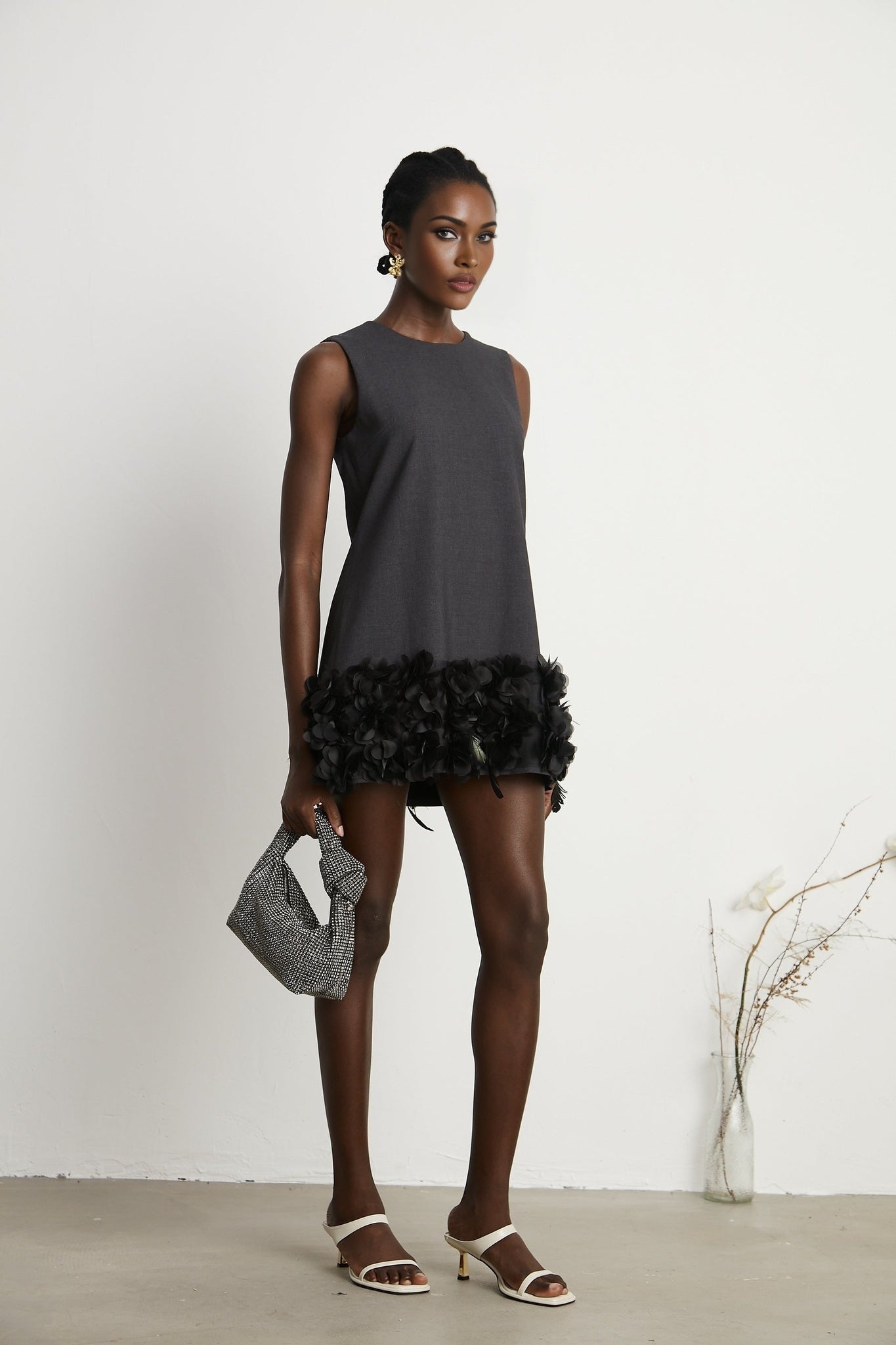 Antonietta Minikleid Graue Wolle Feder Kristallbesatz