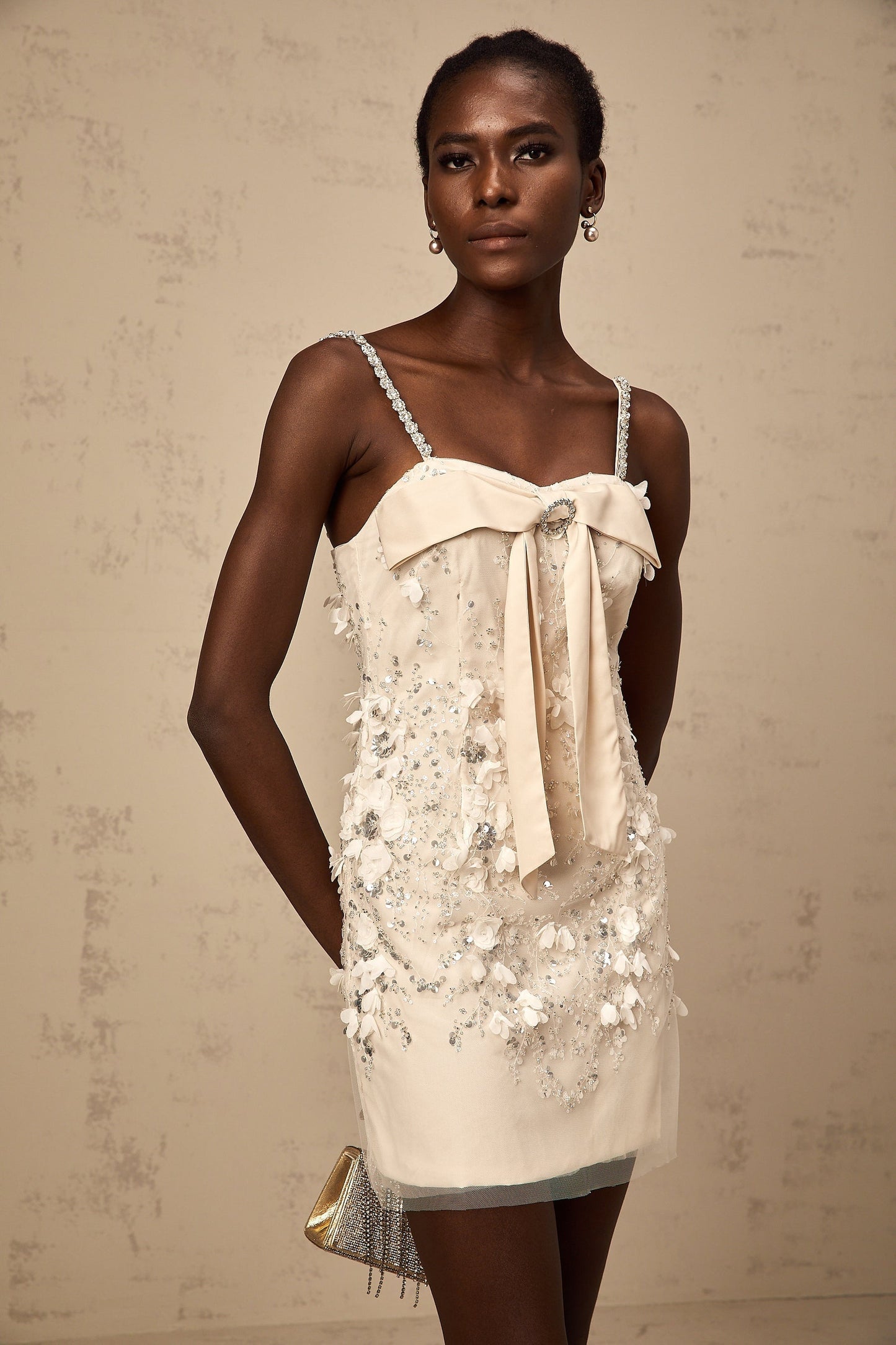 Sloan Pailletten Minikleid in Pink mit Schleifenverzierung