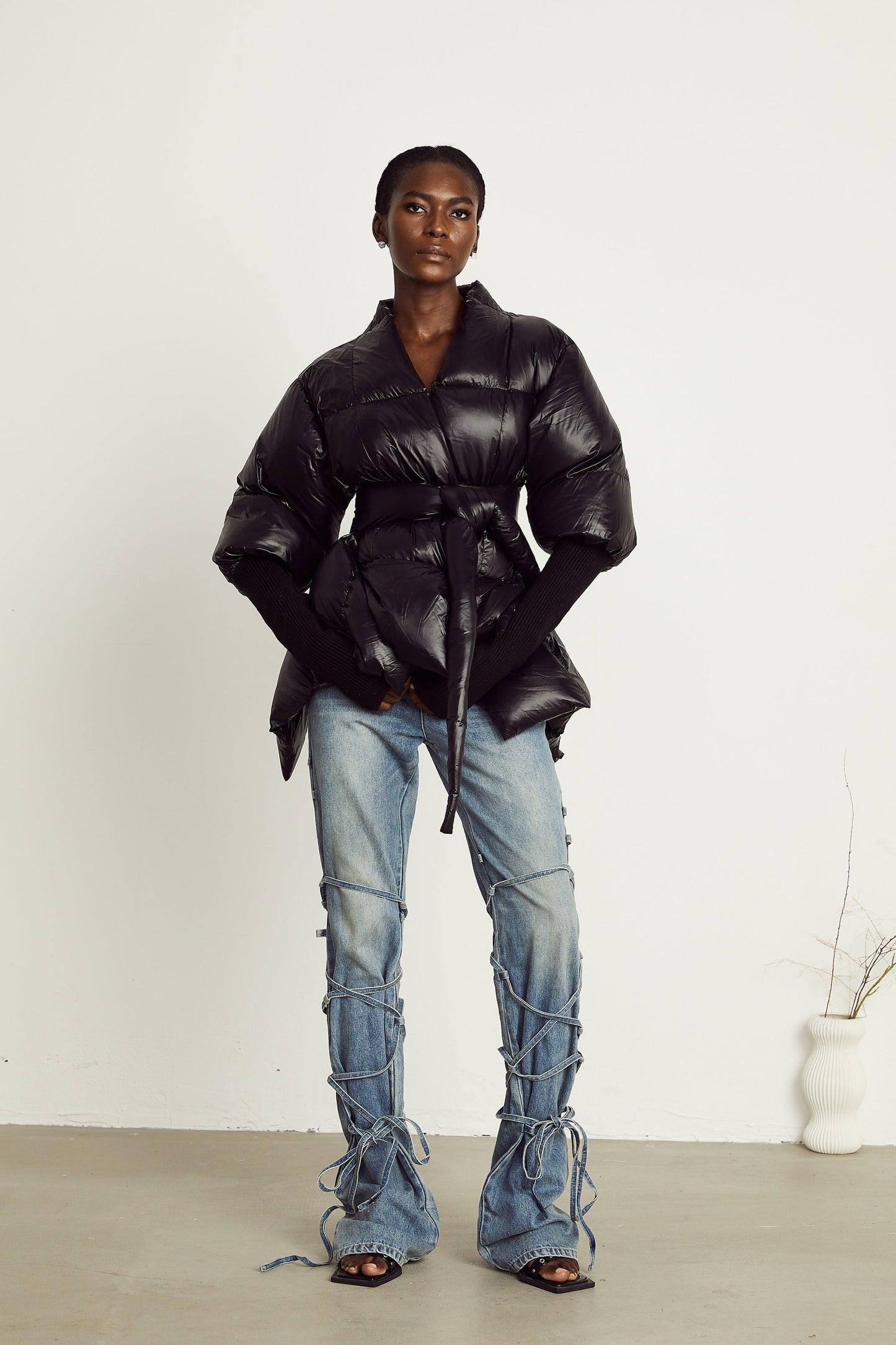 Everleigh Jacke Schwarz Fledermausflügel Daunen & Strickbesatz