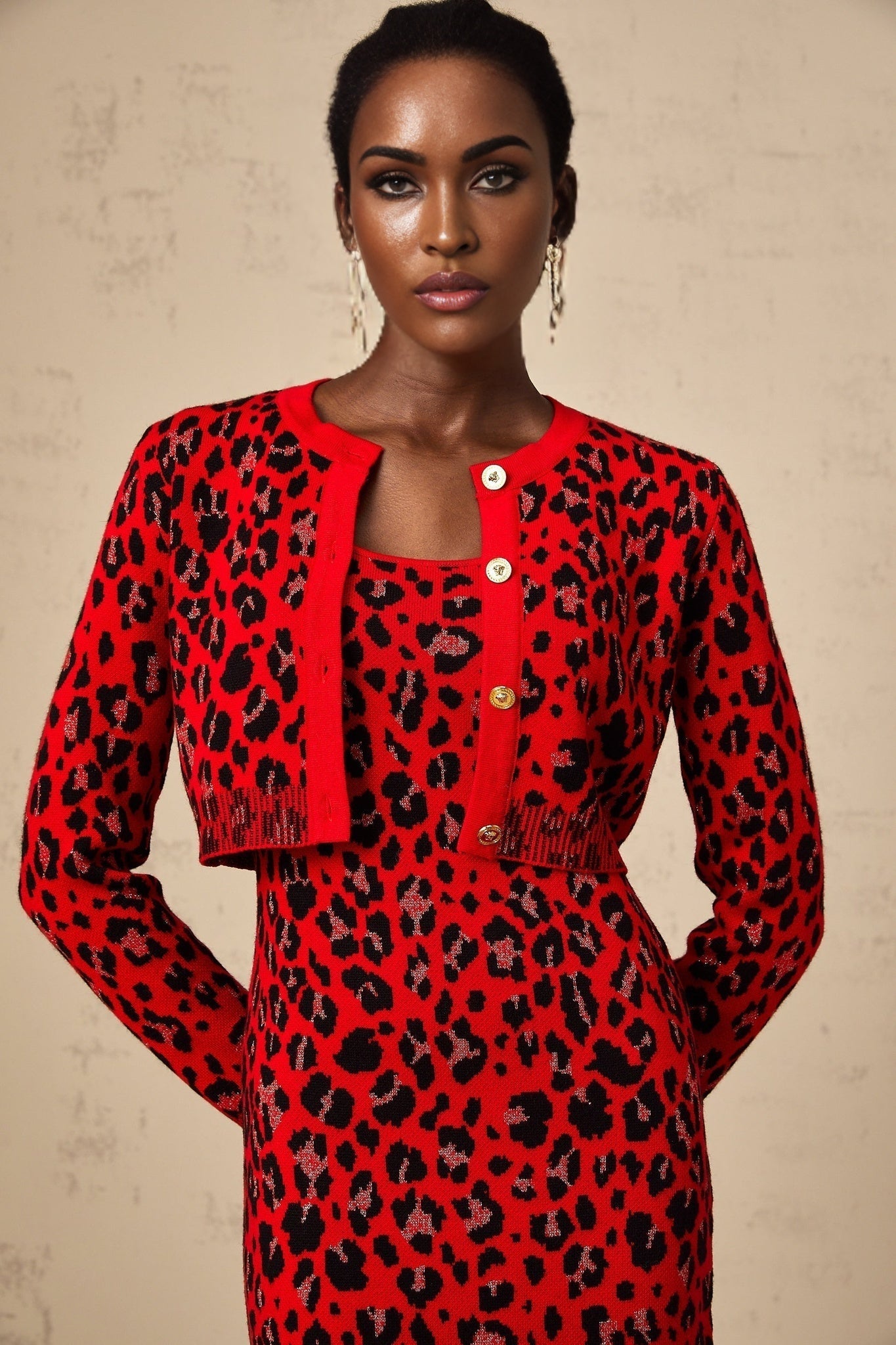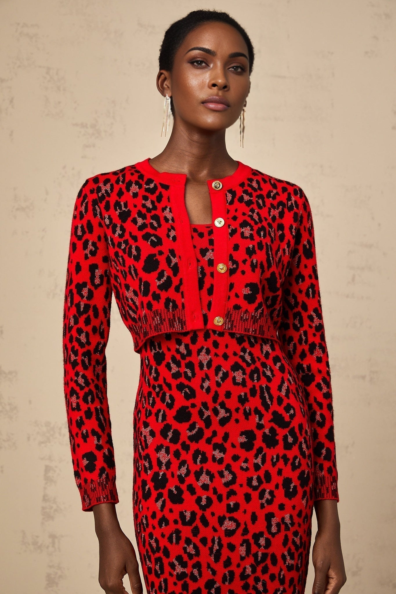Honorine roter Leoparden-Print Lurex-Strickjacke