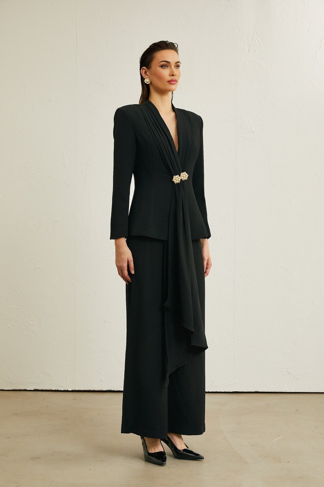 Barbara Jacke & Hose Plissierte Schleife Schwarz Set