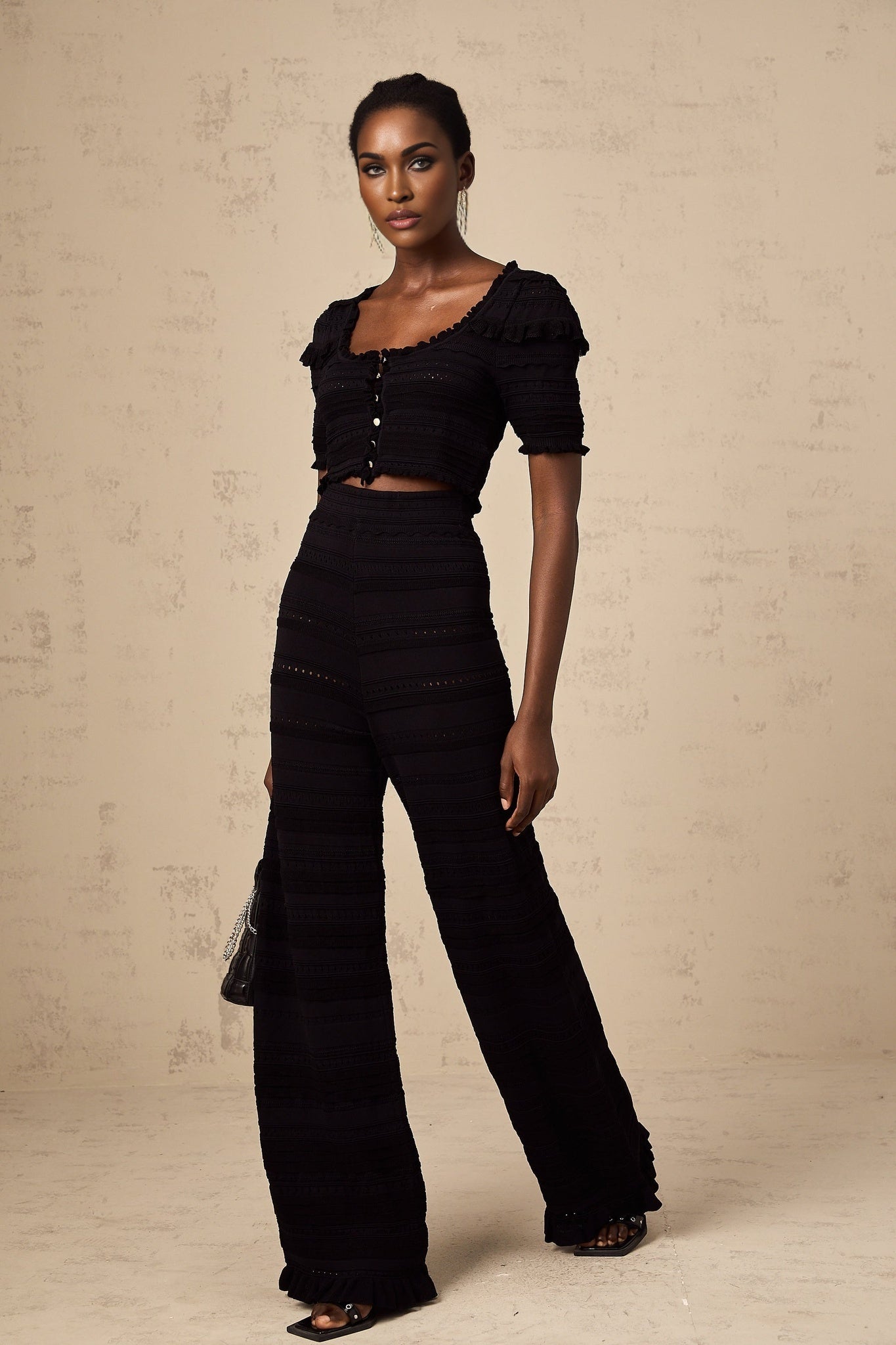Felicita Top & Hose Schwarz Häkel Rüschen Set