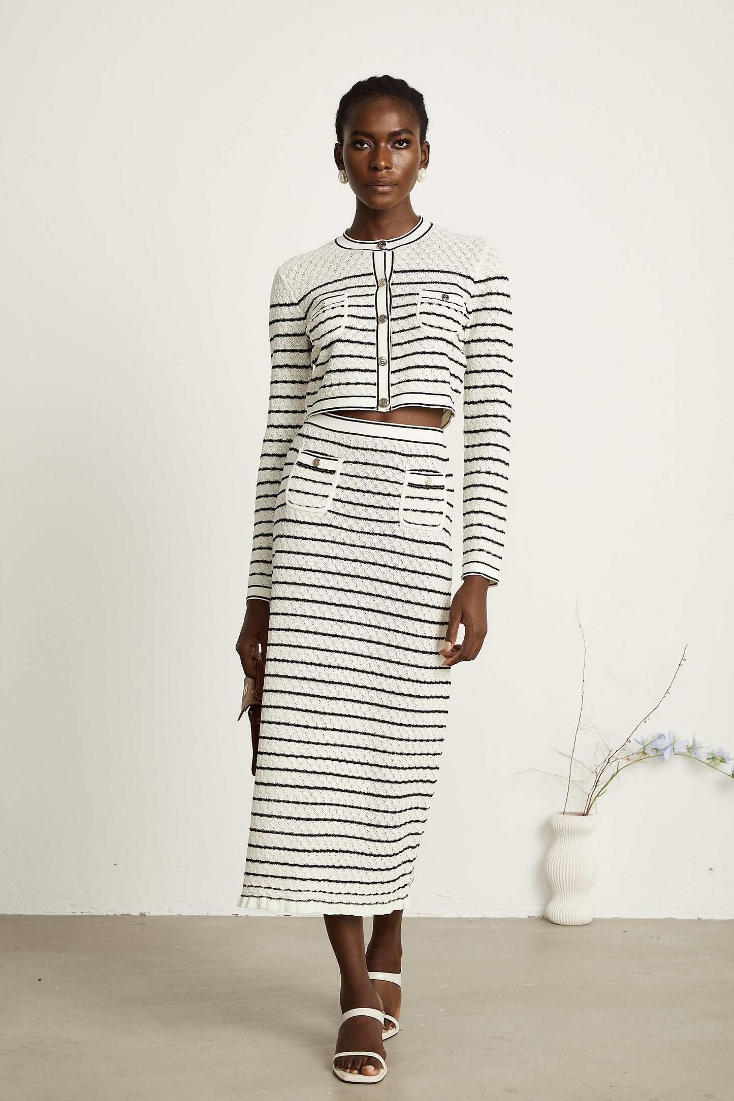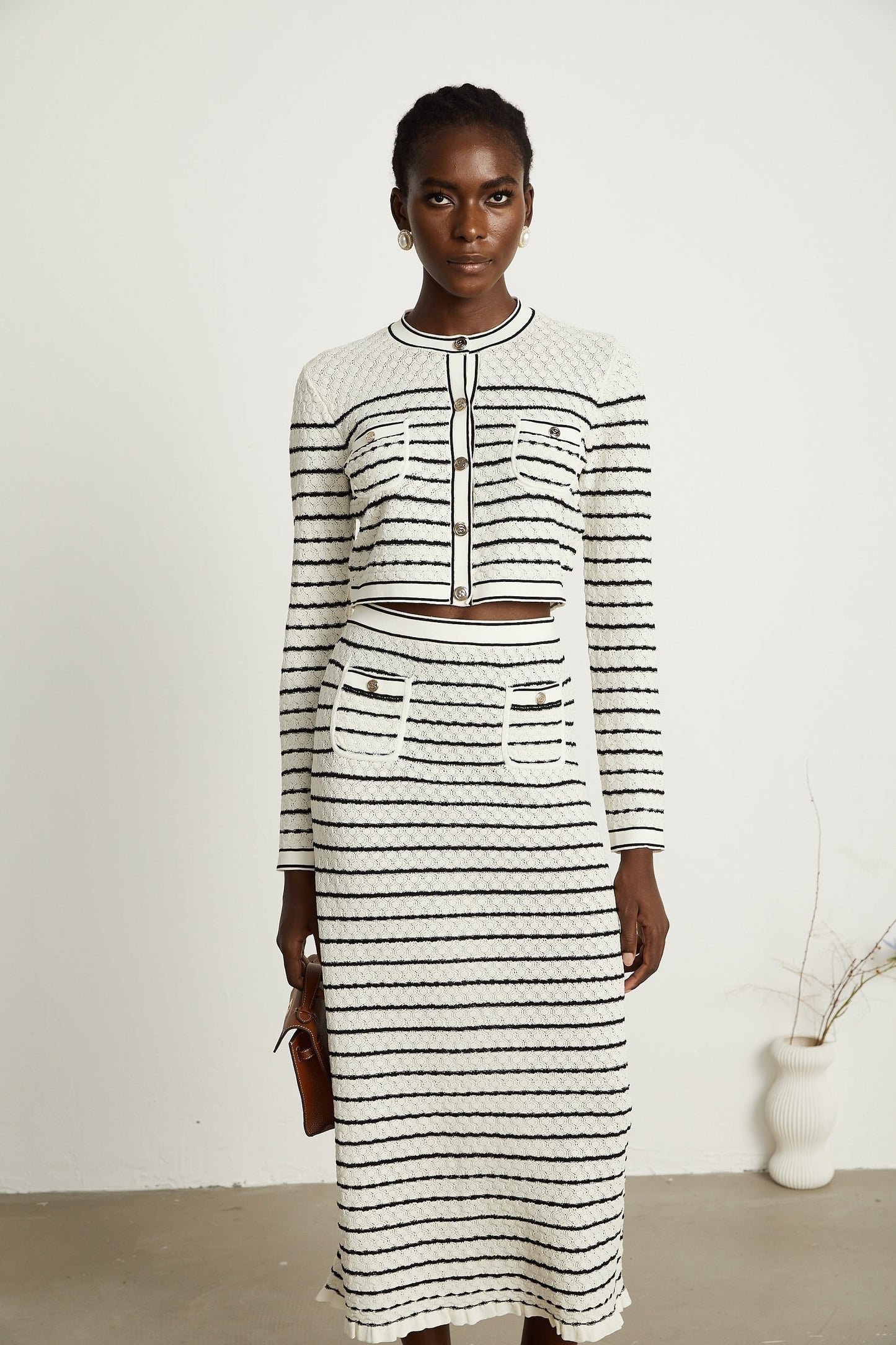 Tiziana Cardigan & Rock Set in Weiß & Schwarz