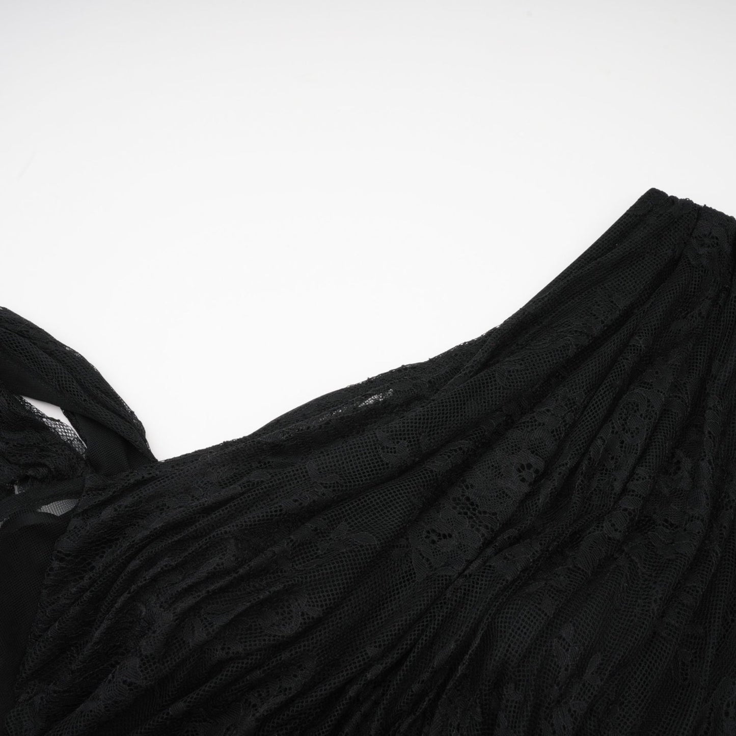 Zita Maxikleid - Klassisches Schwarz, Ein-Schulter-Asymmetrisches Design mit Spitzenverzierungen